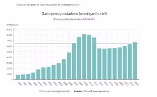 El Gobierno prevé aumentar el gasto para Investigación, Desarrollo e Innovación (I+D+i) civil en 2019 hasta los 6.729 millones de euros, 357 millones más que en 2018 (un 5,3%). De esta dotación, los créditos del presupuesto no financiero (subvenciones) ascienden a 2.845 millones de euros, lo que supone un aumento del 8% respecto a 2018 (212 millones más), mientras que los créditos del presupuesto financiero (préstamos y anticipos) se elevan a 3.884 millones de euros, con un incremento del 3,9% con respecto al año anterior.