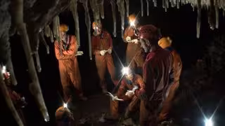 A continuación, está previsto que los astronautas desciendan a las cuevas Grutta Sa en la isla de Cerdeña (Italia), para pasar seis días bajo tierra. Desde el campo base, explorarán la zona y llevarán a cabo experimentos en completa oscuridad, iluminados sólo con las lámparas que llevan en sus cascos.