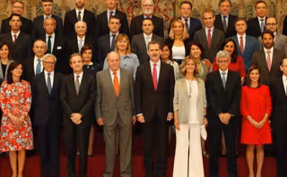 A su llegada al Palacio Real de El Pardo, Felipe y Juan Carlos fueron recibidos por el presidente del Consejo de Administración del Patrimonio Nacional, Alfredo Pérez de Armiñán; la presidenta del Patronato de la Fundación Cotec y presidenta de Genetrix, Cristina Garmendia; el vicepresidente del Patronato de la Fundación Cotec y presidente de CaixaBank, Jordi Gual; y el vicepresidente del Patronato de la Fundación Cotec, secretario general y director de Operadores y Regulación de Telefónica España, Pablo de Carvajal.