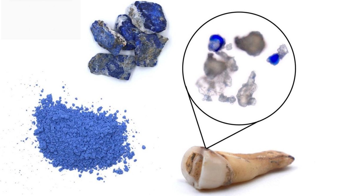 "Fue una gran sorpresa, ya que el cálculo se disolvió y soltó cientos de diminutas partículas azules", recuerda la coautora Anita Radini, de la Universidad de York. Un análisis cuidadoso utilizando varios métodos espectrográficos diferentes, incluida la espectroscopía de rayos X de dispersión de energía (SEM-EDS) y la espectroscopía micro-Raman, reveló que el pigmento azul se realizó a partir del lapislázuli.