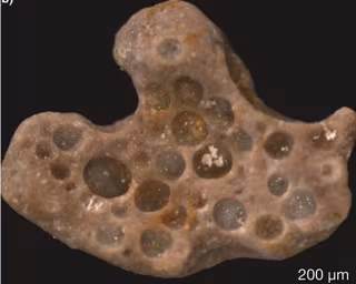 Therese Sallstedt y sus colegas de la Universidad del Sur de Dinamarca, el Museo Sueco de Historia Natural y la Universidad de Estocolmo estudiaron estos sedimentos fosilizados, y encontraron esferas redondas sobre las esteras microbianas.