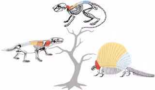 "Los sinápsidos no mamíferos más antiguos tenían menos regiones que los mamíferos vivos", afirma Jones. Hace unos 250 millones de años, una nueva región evolucionó cerca de los hombros y las patas delanteras y comenzaron a aparecer cambios dramáticos en las extremidades anteriores de animales conocidos como terápsidos no mamíferos. Estos desarrollos simultáneos, creen los científicos, probablemente ocurrieron junto con cambios en la forma en que las criaturas caminaron y corrieron.
