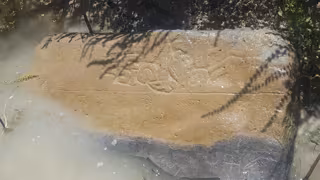 Un consejo de un agricultor turco local llevó a los arqueólogos a esta piedra medio sumergida en un canal de riego. Inscripciones del siglo VIII a.C. Todavía son visibles - JAMES OSBORNE