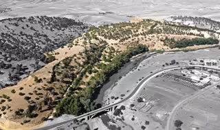 Fotografía aérea de la cresta y el río Oued Beht, resaltada en color - TOBY WILKINSON