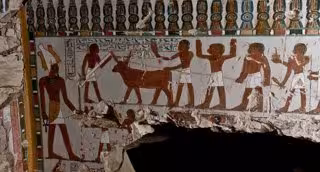 "Muchas de las escenas representan al dueño de la tumba y su esposa frente a una mesa con ofrendas y una vista de una diosa cuidando a un niño de la familia real, así como representaciones de la vida cotidiana", añadió.