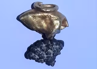 El descubrimiento es de un depósito que incluye capas de ceniza, puntas de flecha que datan de la época, así como tiestos, lámparas y una importante pieza de joyería de época: una borla o arete de oro y plata.