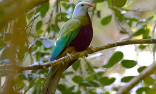 Una paloma frugívora wompoo en Queensland, Australia. Desentrañar un misterio genético reveló que los flamencos y las palomas están relacionados más lejanamente de lo que se pensaba - DANIEL J. FIELD