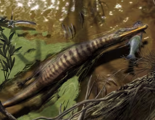 Mientras tanto, el Suchomimus africano, estrechamente relacionado, tenía huesos más huecos. Todavía vivía junto al agua y comía pescado, como lo demuestran su hocico de cocodrilo y sus dientes cónicos, pero basándose en su densidad ósea, no nadaba mucho.