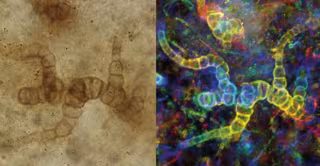 La Dra. Christine Strullu-Derrien, científica asociada del Museo y autora principal del estudio, dice en un comunicado: "Con las reconstrucciones 3D, pudimos ver evidencia de ramificación, que es una característica de las cianobacterias hapalosifonáceas".