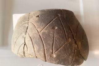 Parte de una vasija decorativa de cerámica LBK utilizada para el almacenamiento de alimentos del sitio de Ensisheim en Alsacia, Francia. - EMMANUELLE CASANOVA