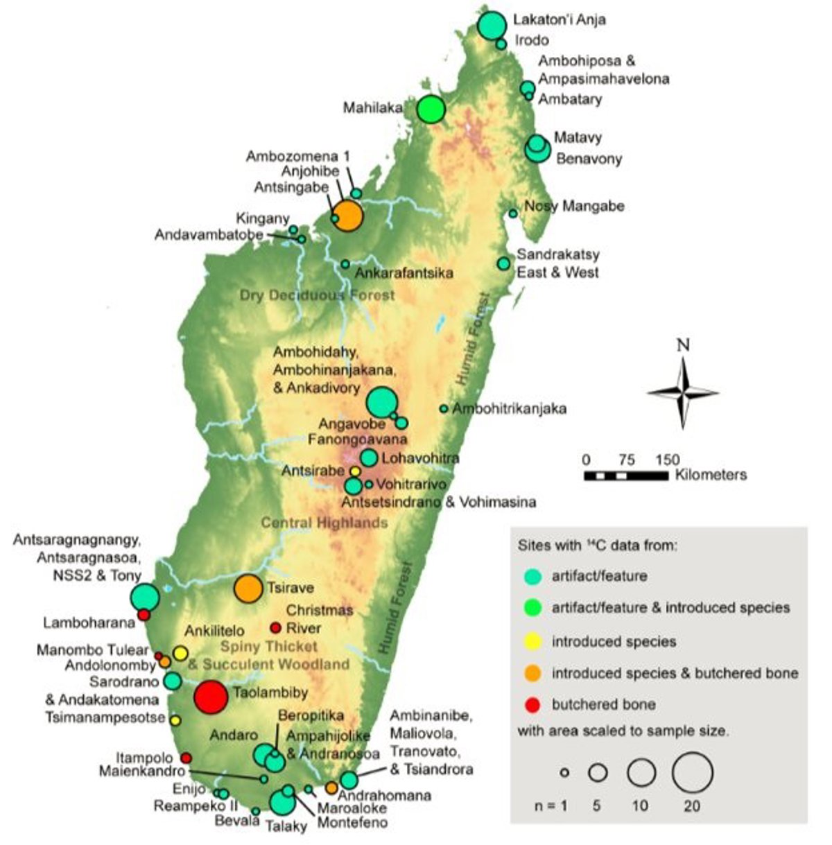 Para determinar la línea de tiempo del asentamiento humano, los investigadores utilizaron modelos estadísticos para clasificar las fechas utilizando criterios específicos, incluyendo si las muestras fechadas estaban claramente asociadas con actividades humanas y si las muestras provenían de especies de vida larga o corta, de modo que tanto la confiabilidad y se podría evaluar la precisión de las fechas de radiocarbono. Este método de "higiene cronométrica" nunca se había hecho para Madagascar.