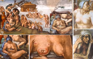 Las comparaciones con otras obras de Miguel Ángel revelan que, por supuesto, era bastante capaz de representar el pecho femenino sano. En las figuras femeninas de "El Juicio Final" y en esculturas como "Amanecer" y "Noche" de la Capilla de los Médici, los senos están representados con una simetría libre de signos patológicos, lo que refuerza la idea de que las anomalías en "El Diluvio" fueron deliberadas.