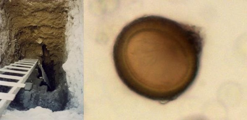 El equipo utilizó una combinación de microscopía y análisis biomolecular (ELISA) para descubrir huevos de parásitos en una docena coprolitos de heces fosilizadas, y algunos sedimentos pozo negro. El pozo negro en sí, que se encuentra a poca distancia al norte de la Iglesia del Santo Sepulcro, fue mucho más que un simple agujero en el suelo: presenta un techo abovedado, con paredes de piedra, y dos rampas de entrada para la defecación en lados opuestos.