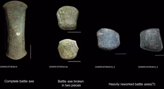 La doctora Christina Tsoraki, de Leicester, llevó a cabo un análisis del desgaste del ajuar funerario en el museo como parte del proyecto "Más allá del sistema de las tres edades". En el proceso, observó lo que parecían ser residuos de oro en sus superficies. También quedó claro que las herramientas de piedra se habían utilizado para fines muy diversos: algunas se emplearon como martillos y yunques, mientras que otras se utilizaron para alisar otros materiales.