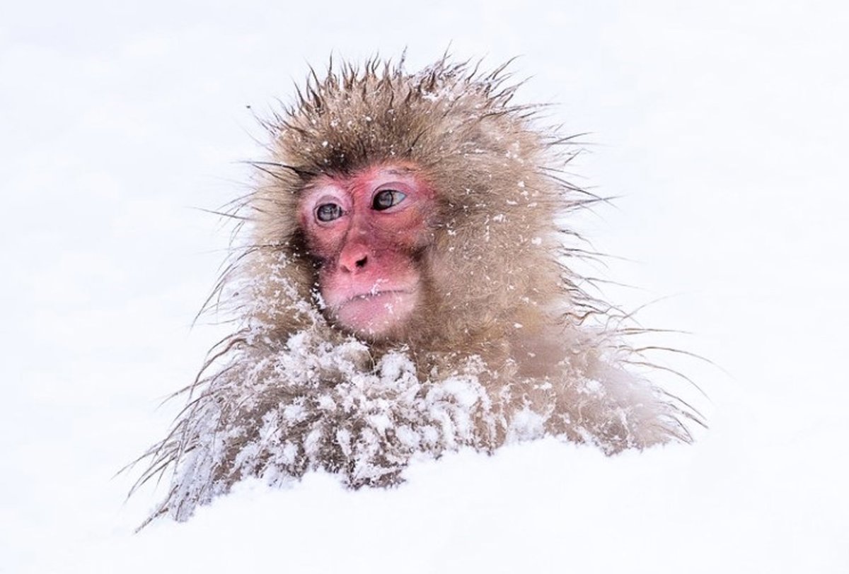 Cría de mono bajo la nieve - FLICKR