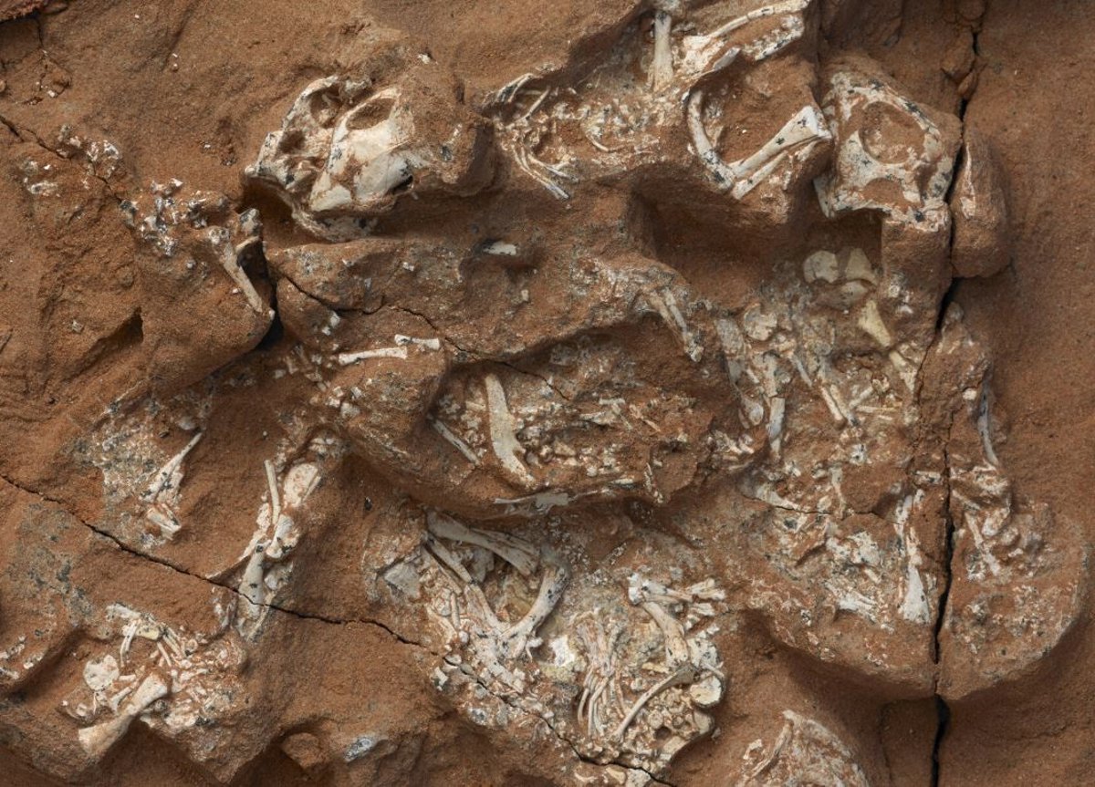 Ejemplar preserbado de Protoceratops con seis embriones que presentan esqueletos casi completos - M. ELLISON/AMNH