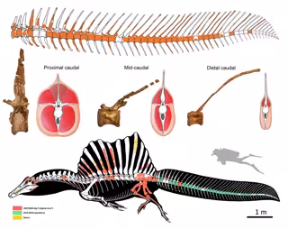 Entre 2015 y 2019, el equipo de Ibrahim recuperó muchos más fósiles del esqueleto, incluida una cola notablemente completa, con forma de aleta, capaz de un amplio movimiento lateral y caracterizada por espinas extremadamente largas. Después de preparar todos los fósiles, el equipo usó fotogrametría para capturar digitalmente la anatomía de la cola.