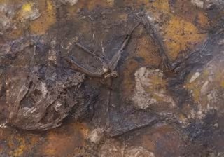 Esqueleto bien conservado de una rana fósil de la Colección Geiseltal. La rana probablemente murió durante el apareamiento en un ambiente pantanoso y se rompió en dos pedazos debido a las corrientes en el fondo del lago. - D. FALK.