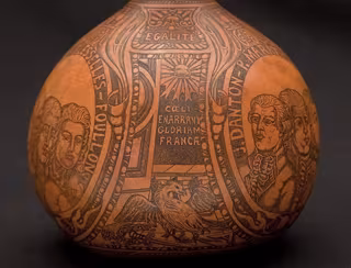 La calabaza muestra los retratos de varios protagonistas de la revolución francesa, como George Danton, Maximilien Robespierre, Camille Desmoulins, Louis-Sébastien Mercier, Jean Paul Marat, la reina María Antonieta o el propio Luis XVI.