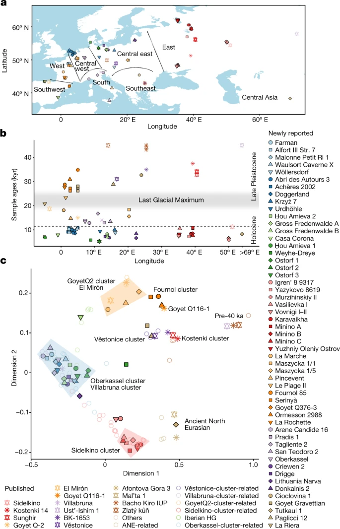 Estaban vinculadas por una cultura arqueológica común: utilizaban armas similares y producían un arte portátil parecido. Sin embargo, desde el punto de vista genético, las poblaciones del oeste y suroeste de Europa (las actuales Francia, España y Portugal) diferían de las poblaciones contemporáneas del centro y sur de Europa (las actuales República Checa e Italia).