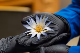 El investigador se ha centrado en la importancia cultural del loto azul egipcio y las propiedades químicas que lo diferencian de los productos vendidos en línea. - DIEGO MORAN/UC BERKELEY