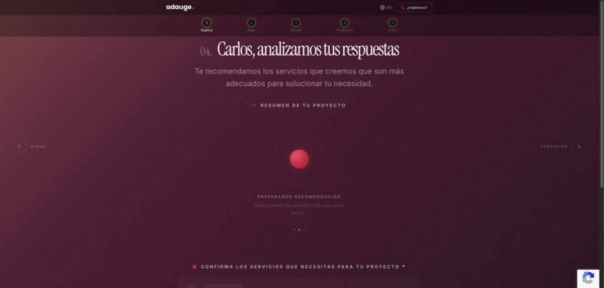 Una vez completado el diagnóstico inicial, el sistema genera un espacio privado donde el cliente puede consultar el enfoque recomendado para su proyecto, recibir una propuesta detallada con el desglose de servicios y precios, y hasta firmar el contrato de forma digital y hacer el seguimiento de la evolución del trabajo. Cada fase se alimenta de la información de la anterior, lo que reduce los tiempos de gestión y mejora la calidad de las propuestas.
