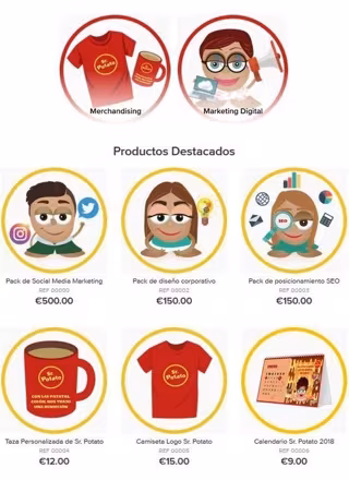 Sr. Potato, la agencia especializada en marketing digital y en redes sociales, posicionamiento SEO, diseño gráfico y comunicación corporativa, se desmarca de sus competidores al comercializar sus servicios y merchandising relacionado con su marca a través de una tienda online en su fanpage de Facebook, poniendo en práctica sus conocimientos sobre Social Commerce para buscar una forma innovadora de acercarse a sus posibles clientes