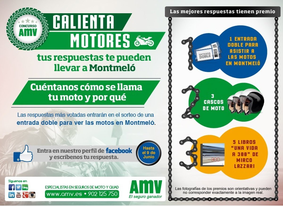 El concurso en cuestión arrancó el pasado 26 de mayo y se prolongará hasta el próximo 9 de junio. Durante todo ese tiempo, los seguidores de AMV en la popular red social deberán hacer acopio de toda su imaginación para responder a la siguiente pregunta: ¿cómo llamarías a tu moto y por qué? A partir de esta consigna, se espera que los internautas den rienda suelta a su creatividad y sorprendan al resto de usuarios con los nombres y motivos más originales.