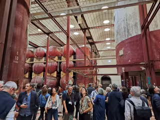 Alboraya, 4 de octubre de 2024. Un grupo de 140 "Architectes Conseils de l’Etat" han visitado hoy las antiguas bodegas Vinival, situadas en Alboraya, para conocer el edificio y el proyecto que lo rehabilitará y lo pondrá en el centro de un nuevo ecobarrio en La Patacona. Esta visita se enmarca en un seminario sobre la arquitectura valenciana y su relación con el agua y el territorio, una actividad en la que participan la Universidad Politécnica de Valencia (UPV) y el Institut Valenciá d’Art Modern (IVAM), entre otras instituciones.