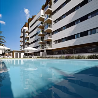 Los espacios abiertos son otra de las claves del proyecto. Además de terrazas o jardines que se conciben como una estancia más de las viviendas, el complejo cuenta con una amplia zona común diseñada para el disfrute de todos los vecinos y compuesta por equipamientos como gimnasio, área infantil, zonas verdes, sala multiusos y espacio coworking, para teletrabajar cómodamente, o piscina de depuración salina, siendo este un sistema sostenible para el tratamiento del agua que promueve la utilización de productos respetuosos y biodegradables durante el proceso de mantenimiento del agua de la piscina y al mismo tiempo reduce el consumo de productos químicos y aditivos.