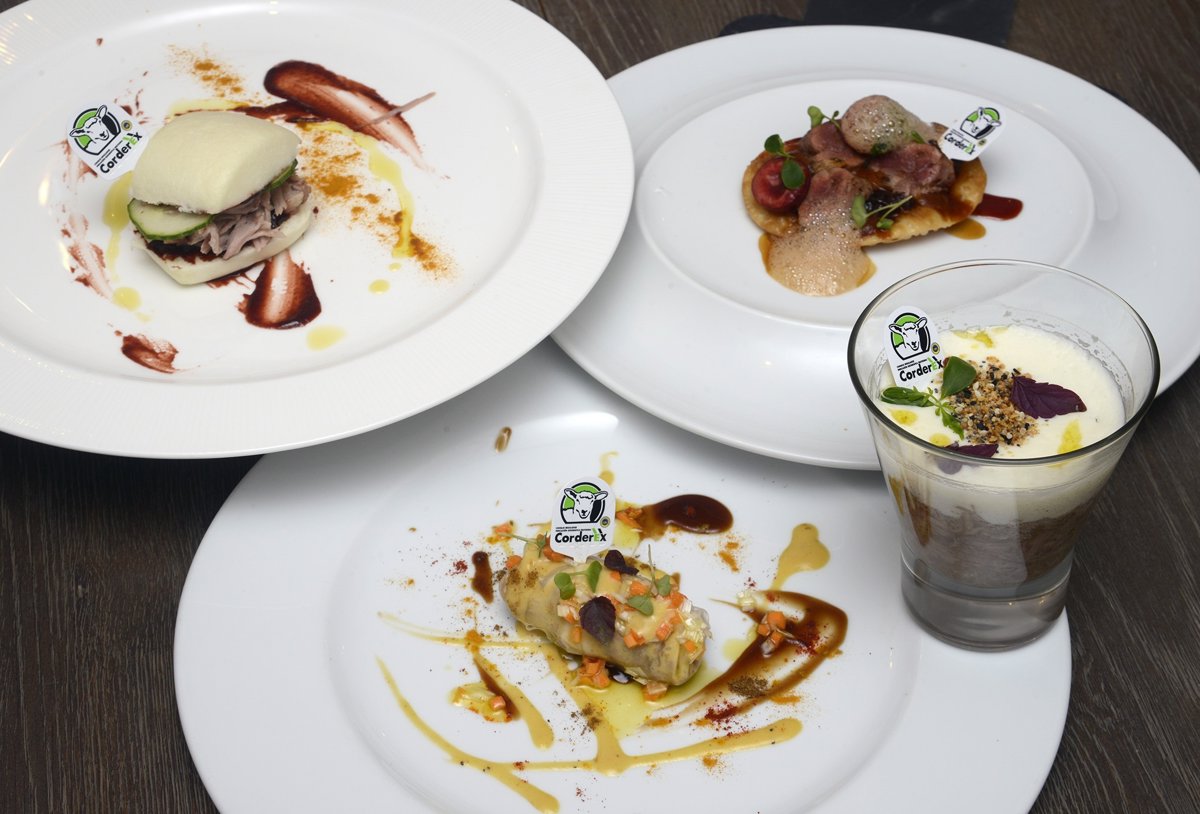 "Este showcooking ha cambiado la receta tradicional a una más moderna", presentó José Luque. De la popular receta de caldereta de cordero, almendras, aceitunas y manzanilla a un Café Latte de Corderex, espuma de coliflor, arena de almendra y semillas; de un rable de cordero marinado en ginebra con cerezas a un Pestiño de Corderex, gellé de gin tonic y cerezas texturizadas; de una paletilla de cordero confitada a baja temperatura con ajos y tomillo a un Bocata Gua Bao vaporizado de Corderex confitado con pepino y salsa hoi-sin; y de un cordero escabechado con cítricos y cardamomo a un Spring-Roll de Corderex con vinagreta de su escabeche y mucho umami.
