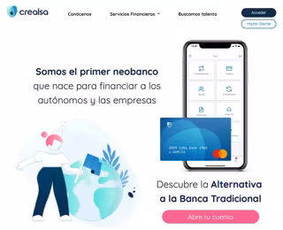 La compañía Crealsa (www.crealsa.com), da un nuevo paso en su estrategia de transformación digital y se convierte en el primer neobanco español que financia a empresas y autónomos. La empresa, de origen valenciano, fue creada en 2009 por José Molina, actual CEO, y Javier Chisbert, Executive Director, y está presidida por Andrés Rubio, con Rafael Roldán como vicepresidente.
