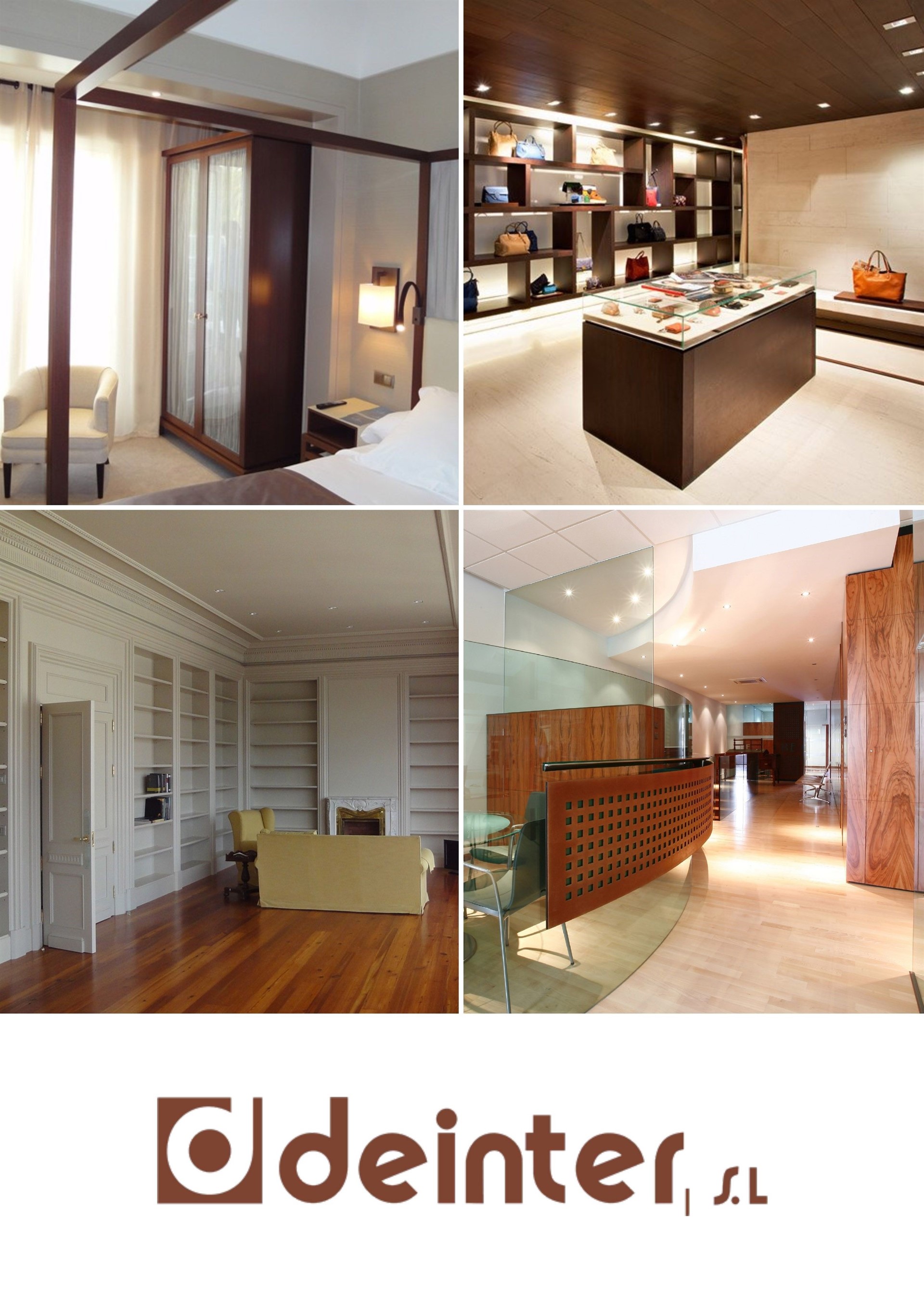 DEINTER, S.L. es una empresa que, con sede en Cambre (A Coruña), centra su actividad empresarial desde hace más de 35 años, en el diseño, fabricación y montaje de proyectos de mobiliario a medida para oficinas, establecimientos comerciales, hoteles y viviendas entre otros