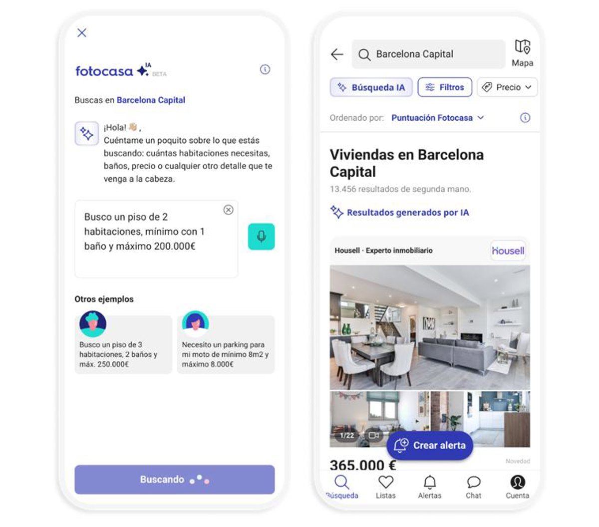 Madrid, 30 de octubre.- Con esta nueva funcionalidad, totalmente novedosa en el sector inmobiliario, los usuarios pueden expresar sus necesidades directamente con sus propias palabras, escribiendo o dictando a través de su voz lo que buscan. La inteligencia artificial de Fotocasa traduce esa intención en filtros concretos de la aplicación, ofreciendo resultados más relevantes y personalizados.