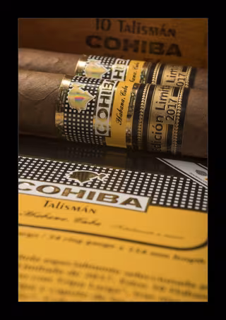 Cohiba Talismán, Edición Limitada 2017, una vitola inédita en el portafolio de Habanos concebida para los amantes de los mejores puros Premium del mundo. Todos los Habanos de esta Edición Limitada han sido elaborados “Totalmente a Mano con Tripa Larga” y con hojas seleccionadas procedentes de la región de Vuelta Abajo*, Pinar del Río*, Cuba* la mejor zona tabacalera del mundo. La cuidadosa concepción y desarrollo de este producto se ha llevado a cabo en la mítica fábrica El Laguito, en La Habana.