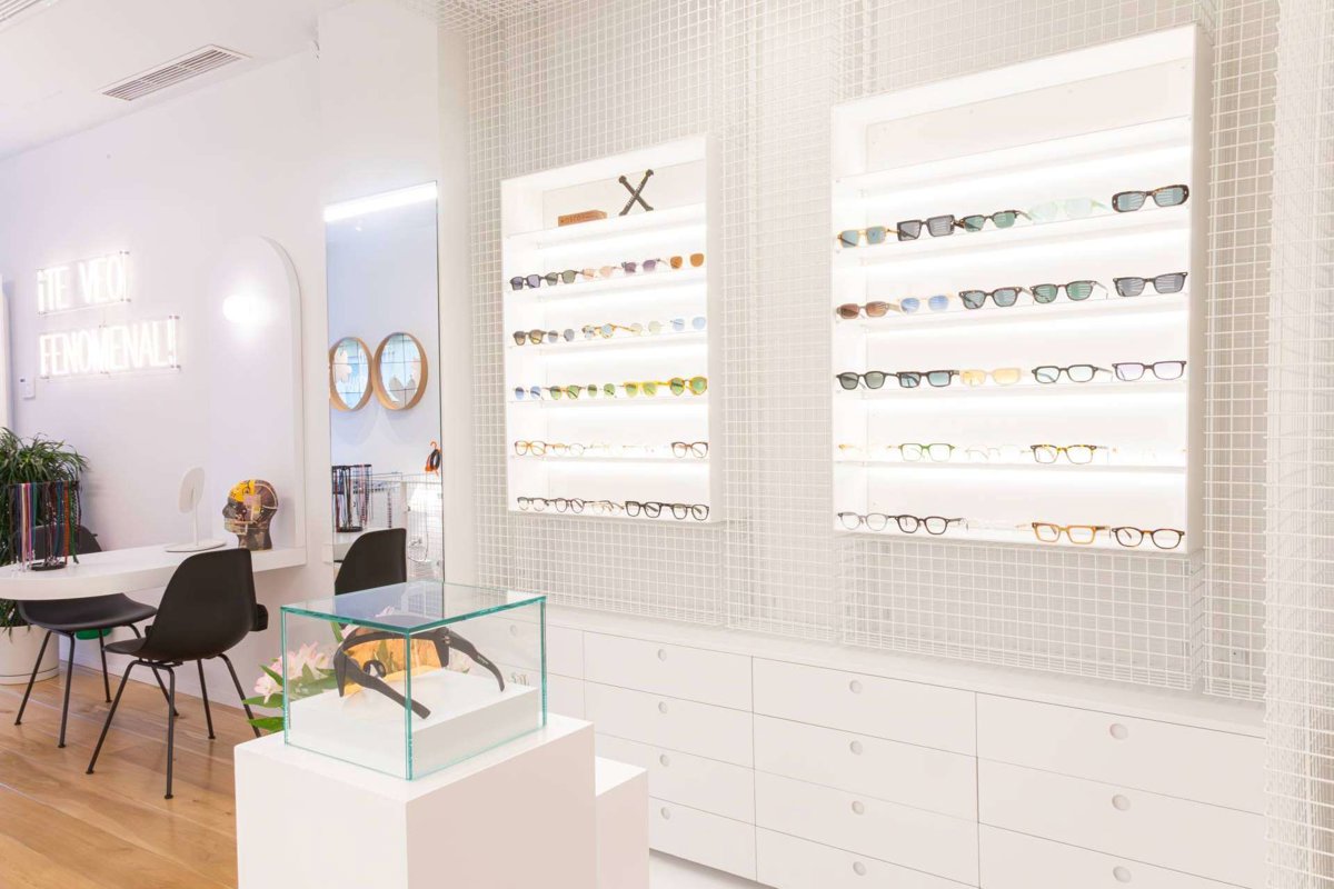 En el interior de sus más de 80 metros cuadrados no se exhiben solo gafas, se podría decir que curan piezas de arte. Firmas de culto como Jacques Marie Mage, Dita, AHLEM, Moscot, Cutler and Gross, Lunor, Matsuda, Mykita, Peter and May o LGR conviven con mobiliario escandinavo, arte contemporáneo y el neón que ya es un icono en sus redes: “Te veo fenomenal”?.