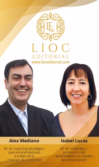 Lioc Editorial es una empresa española con más de 20 años de experiencia en el ámbito editorial. Durante su trayectoria, sus fundadores: Alex Mediano, número 1 en coaching estratégico para emprendedores e Isabel Lucas, experta en visibilidad y promoción del emprendedor en medios de comunicación, han creado una metodología innovadora que permite obtener un libro en tiempo récord sin escribir una sola palabra, dedicándole tan solo un par de horas y obteniendo resultados de Bestseller.