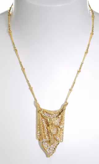 Por otro lado, de la cantidad de joyas disponibles en subasta y que tienen en cuenta esta vertiente artística, algunas de ellas son del extravagante y multidisciplinario Salvador Dalí. Comenzando su diseño en 1941 y aplicando su enfoque idiosincrásico simbólico a los objetos tradicionales, las joyas que él creaba eran según el artista piezas serias. Dalí fabricó alrededor de 40 joyas y estuvo muy involucrado en todos los pasos de la producción junto al joyero barcelonés Octavi Sard. Dalí seleccionó las piedras en función del color y sus asociaciones simbólicas, pero el diseño y la construcción de cada pieza eran su prioridad. Su esmerada artesanía y su singular imaginación es lo que hace que las joyas de Dalí sean tan geniales.