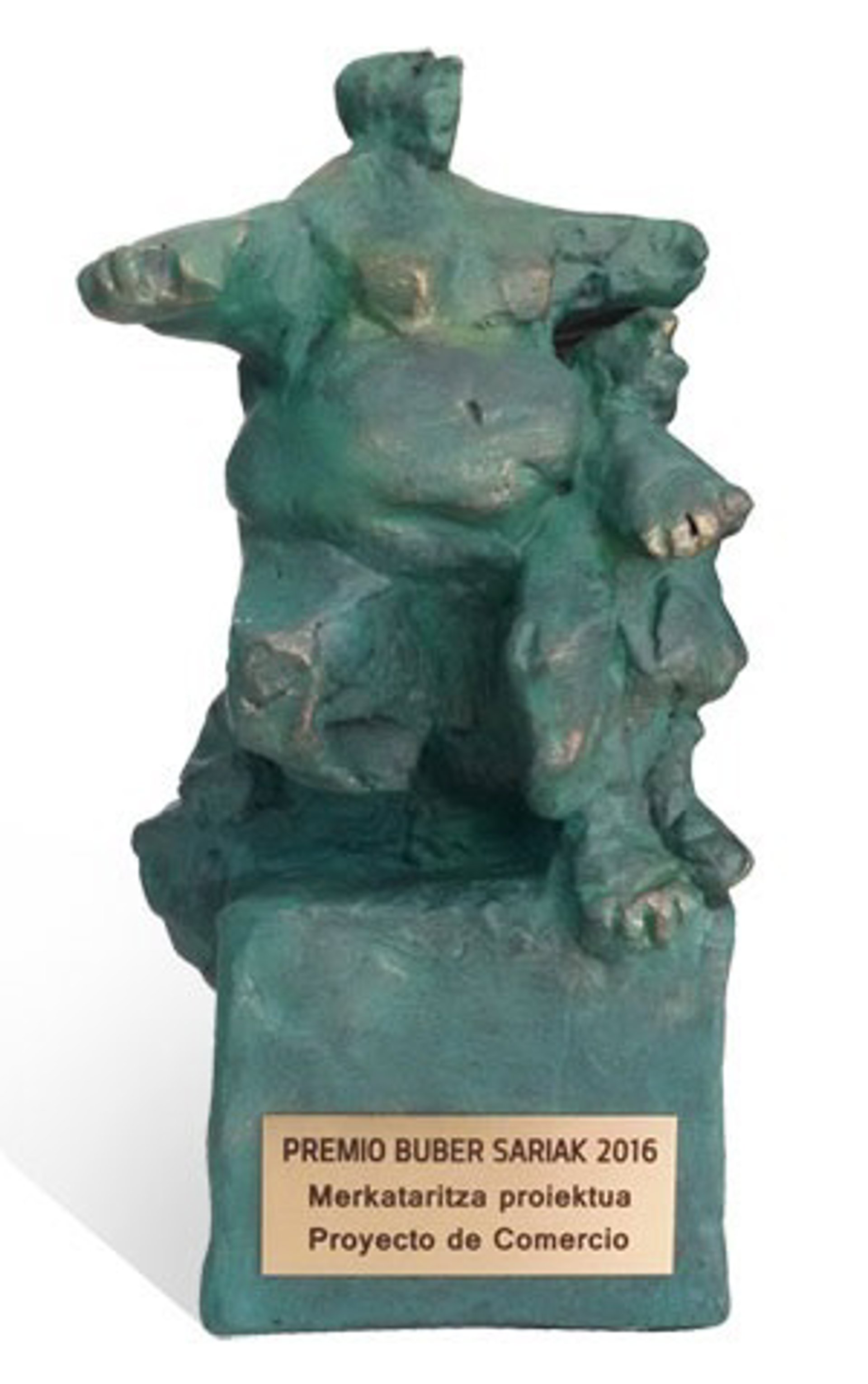 El trofeo que se reparte a los premiados es una escultura del genial artista navarro Vicente Arnoriaga. La obra, elaborada a base de arcilla y fundida en bronce, simboliza mediante tres figuras las "W" de la web y la importancia del trabajo en equipo.