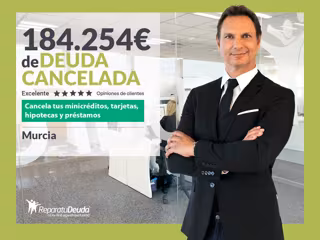 Repara tu Deuda Abogados, despacho de abogados líder en España en la Ley de Segunda Oportunidad, ha conseguido la cancelación de 184.254 euros de deuda en Murcia. Se trata de dos nuevos casos gestionados satisfactoriamente por el despacho en Murcia.