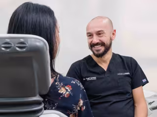 Un dentista conversa con el paciente durante la cita. - CLÍNICAS W