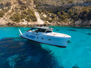 El yate cuenta con múltiples áreas de entretenimiento, incluyendo una espaciosa cubierta principal y un ancho flybridge. Sus amplios y confortables tres camarotes, los tres con baño en suite incluido; un camarote extra para la tripulación con capacidad para dos personas; una equipada cocina con electrodomésticos de última generación; y un salón principal con cómodos sofás, aseguran una estancia única a bordo. Equipado con potentes motores, la Bluegame 74 garantiza un rendimiento excepcional en el agua. Toda una serie de prestaciones que la convierte en la embarcación ideal, ya sea para una escapada y recorrer Mallorca, o una semana y navegar por las cuatro Islas Baleares.