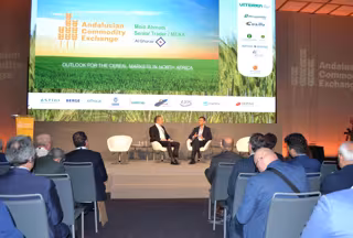 Moin Ahmadi, senior trader de la multinacional Al Ghurair, ha compartido panel con el cofundador de Northstar Brokerage Philip Werle, y ha ofrecido su visión experta del mercado de los cereales del Norte de África. Entre otras cuestiones, ha ofrecido perspectivas sobre "las salvaguardas gubernamentales y la dinámica de importación de Marruecos, las importaciones controladas por el estado y los proveedores cambiantes de Argelia, la adquisición centralizada de Túnez y el mercado sensible a los precios de Libia".