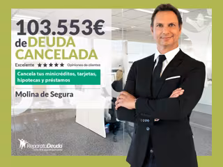 Murcia, 16 de mayo de 2025.- Repara tu Deuda Abogados, despacho de abogados líder en España en la tramitación de la Ley de Segunda Oportunidad, ha logrado una nueva cancelación de deuda en Molina de Segura (Murcia). Mediante la gestión de Repara tu Deuda Abogados, una mujer ha logrado la cancelación de su deuda de 103.553 euros tras haber dictado el juez la Exoneración del Pasivo Insatisfecho (EPI) en su caso.