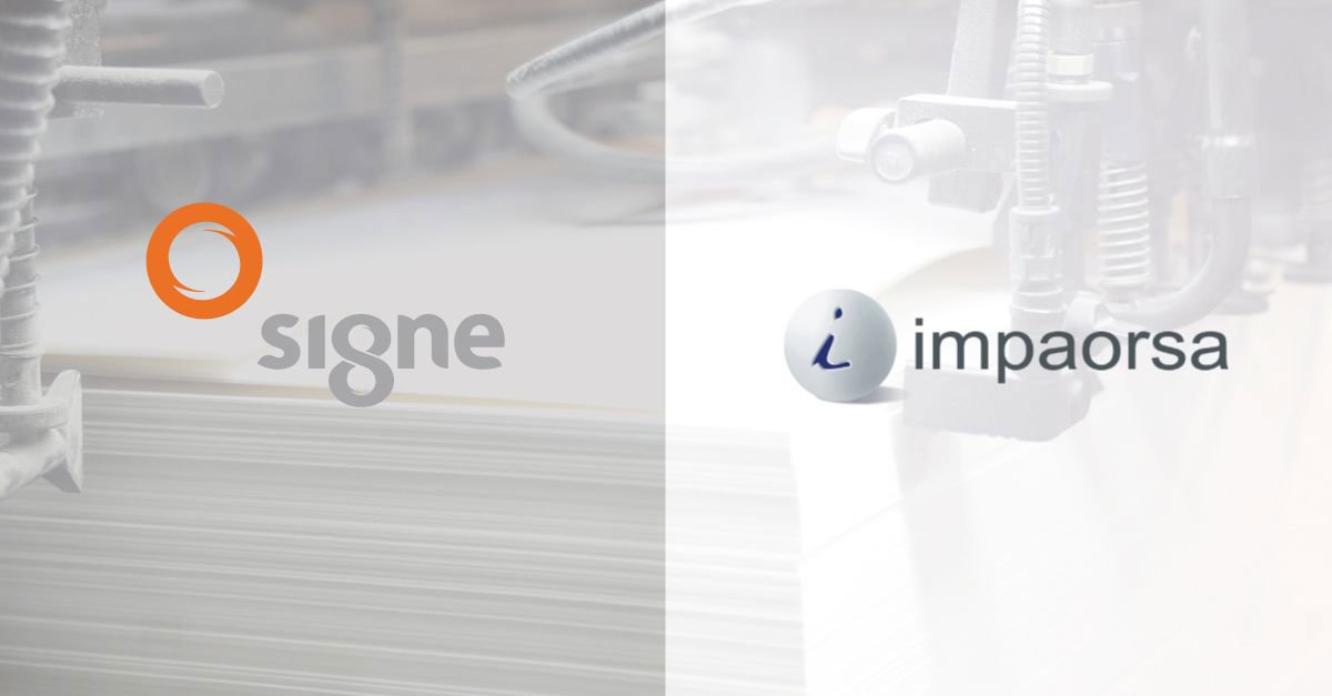 El pasado 29 de julio, la compañía Signe S.A. formalizó la adquisición de la sociedad Impaorsa, un referente con más de 40 años de trayectoria en el sector gráfico y especializada en la impresión de Documentos Integrados, Formularios, Documentos de Seguridad y Etiquetas.