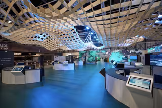 Entre los elementos más destacados del diseño se encuentra una impresionante cubierta que evoca la orografía del archipiélago canario, complementada con un sistema de iluminación LED de última generación que simula el movimiento de los vientos alisios. El espacio incorpora un videowall central en forma de pórtico que muestra las transiciones de luz natural de las islas, integrado en más de 600 metros cuadrados de soportes gráficos.