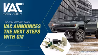 NEWS AKTUELL // HANAU, Germany - VAC announced a binding long-term supply agreement with GM for North America permanent magnet production - another major step forward to create a strong, sustainable and scalable supply chain for electric vehicles. As part of the agreement, VAC will build a facility in North America to manufacture permanent magnets for electric motors used in a broad portfolio of EVs. The new facility will use locally sourced raw materials. The binding agreement finalizes a Memorandum of Understanding VAC and GM announced in December 2021.