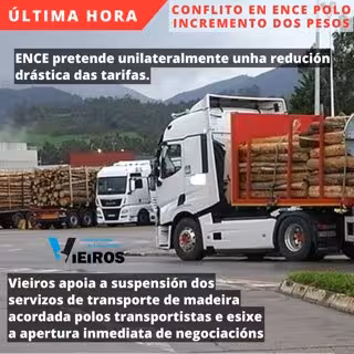 - VIEIROS apoya los acuerdos adoptados por este grupo de transportistas e insta a ENCE a abrir de inmediato una mesa de negociación que pueda gestionar un acuerdo beneficioso para todas las partes.