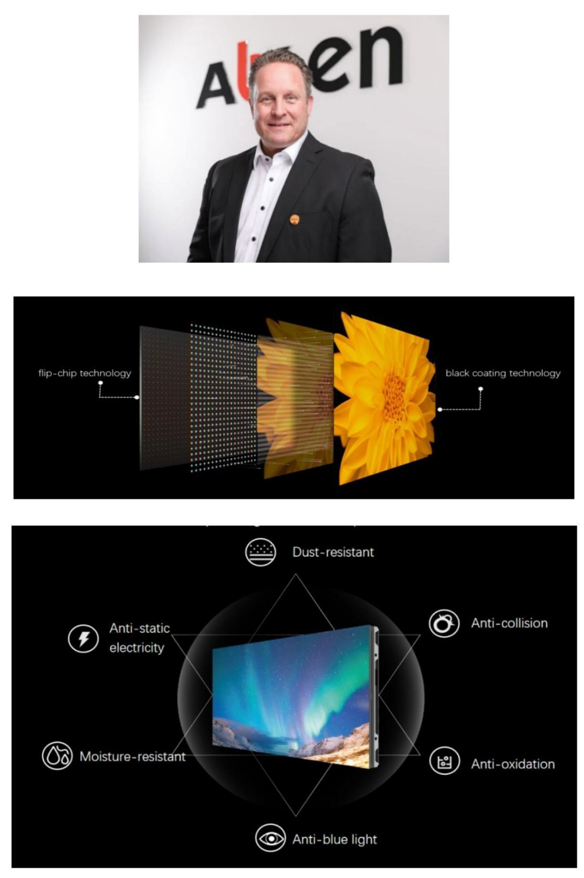 Christian asegura que "la robusta protección de la superficie de los MicroLED de Absen ocupa un lugar destacado en la lista de puntos fuertes, haciendo que las pantallas sean resistentes a la humedad, al polvo, antiestáticas, aseguradas contra la antioxidación y protegidas contra daños por colisión".