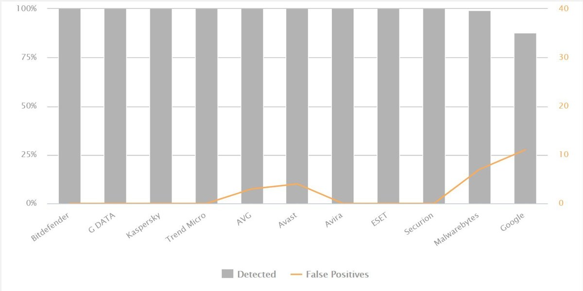 The products of the following security companies evaluated by AV-Comparatives test include:Avast, AVG, Avira, Bitdefender, ESET, G Data, Google, K7, Kaspersky, Malwarebytes, McAfee, Microsoft, NortonLifeLock, Panda, Securion, TotalAV, Total Defense, Trend Micro, VIPRE.